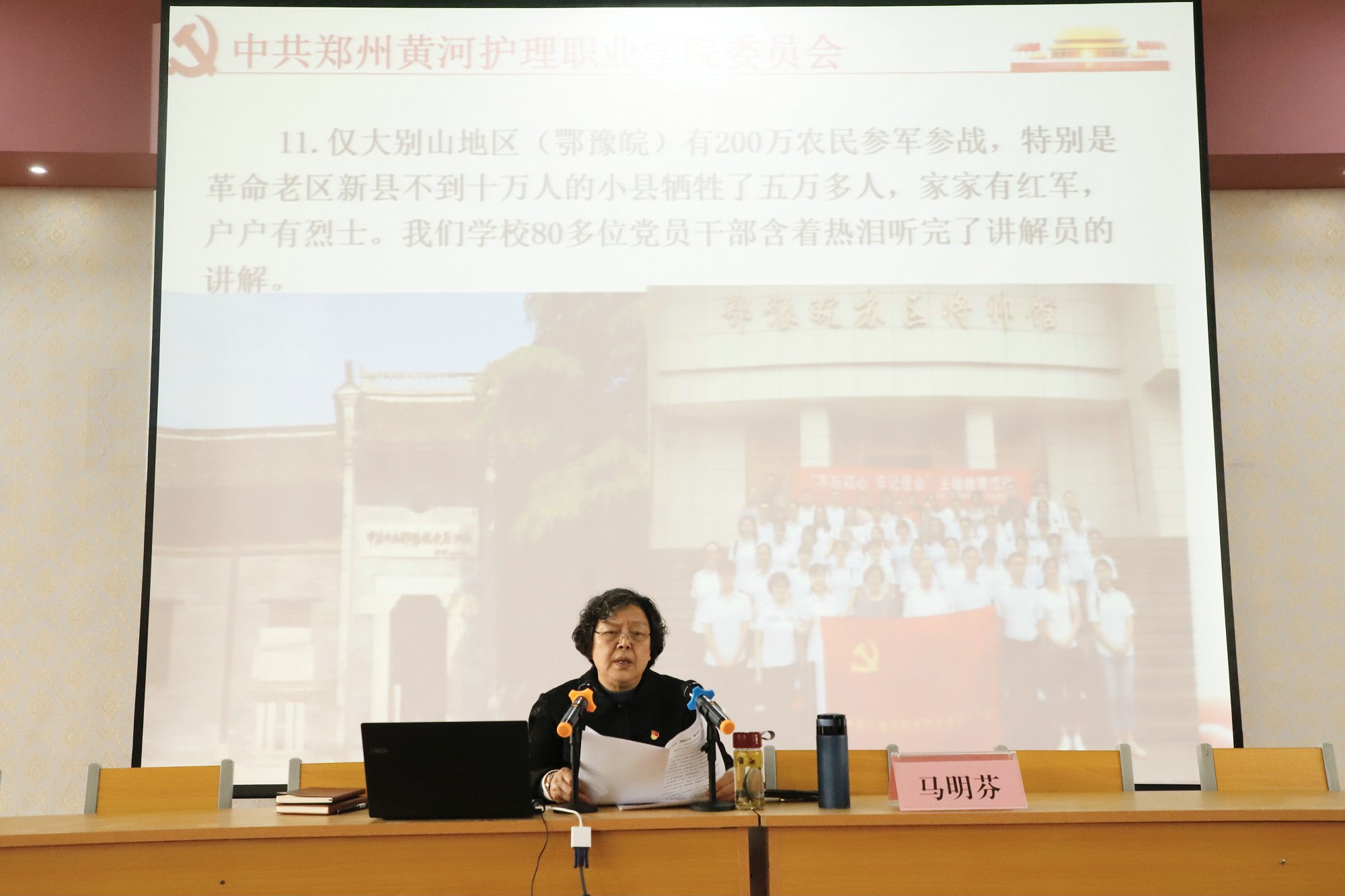 为迎接我们伟大的中国共产党建党100周年,4月7日下午,在学术报告厅,学院党委书记马明芬以“学党史、强信念、育新人、促成才”为主题给护理系、助产系师生党员、入党积极分子上了一堂生动的党课。