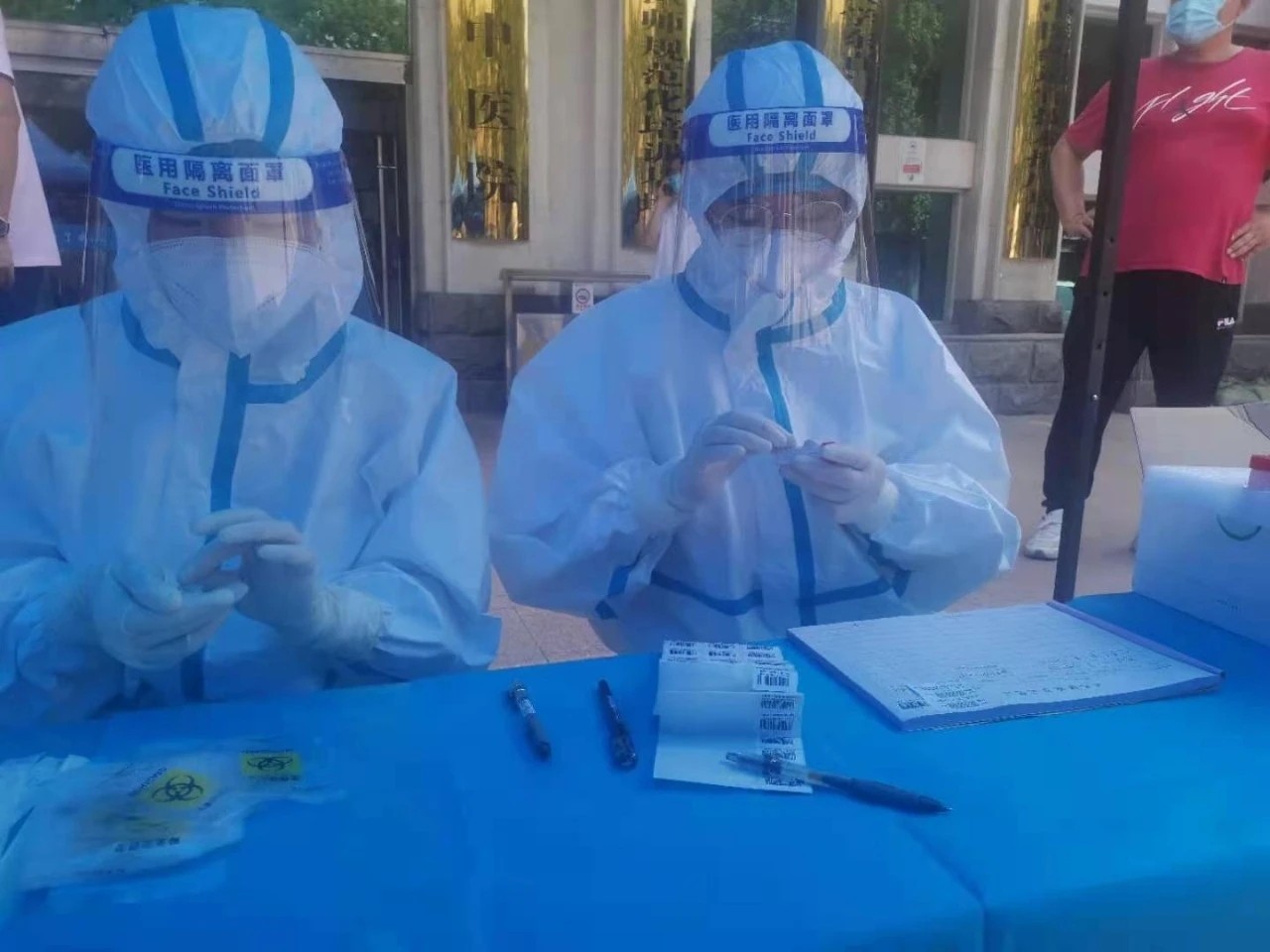 2021年8月2日王璐璐同学接到郑州市中医院护理部通知前往二七广兴洁云花园封控区进行核酸采集。虽是一名实习生,但她毫无畏惧并主动请战担任了此次采集小组的组长。在为400余名居民进行核酸采集后,王璐璐同学顾不上休息再次带队转移到二七区爱馨医院。爱馨医院是一所养老机构,这里的老人大多行动不便。他们就推着治疗车到病房挨个采集。身穿不透气的防护服抬着治疗车上下楼梯,此时的王璐璐汗水浸透全身,累到腿发软,但她没有放弃,依然坚守在抗疫一线,愿当疫情的“汗”卫者。截止8月3日晚上11:00,她和团队为爱馨医院共计931名老人和员工采集完毕后,又立即对所有样本进行核对并交接。她说:“我是一名共产党员,我要为人民服务,我愿意守护大家的平安与健康。”(护理系 徐洋)