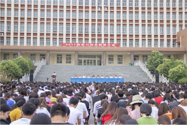 5月30日下午,学院在图书楼广场前举行2017级实习教育动员大会。党委书记马明芬、党委副书记张玉珍、副院长张淑爱出席此次大会,教务处、学生处负责人及各系主任、党总支书记和2017级辅导员、2017级全体学生近2700人参加此次大会。大会由教务处处长李延来主持。