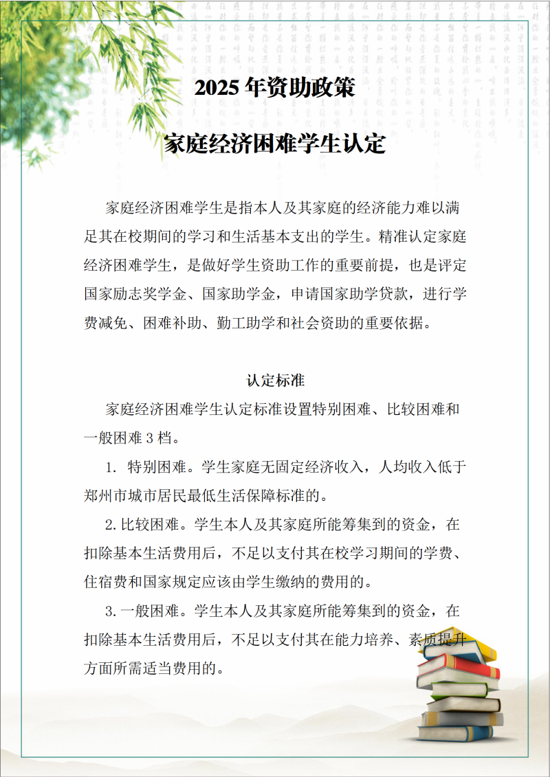 2025年资助政策家庭经济困难学生认定