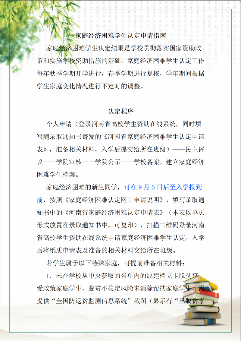 资助政策指南家庭经济困难认定